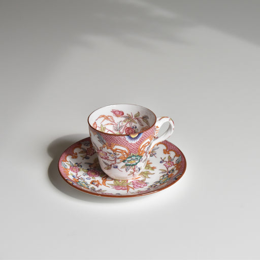 Brocante/蚤の市Sarreguemines窯のアンティークコーヒーカップアンドソーサー Minton柄216番です。 鮮やかな色使いで描かれたきめ細やかな花模様。 こちらはインドの花と蝶々がモチーフにされ、エスニックな雰囲気を感じさせます。 磁器の透き通る美しさと生命力溢れる花々に魅了されるシリーズです。 状...