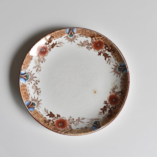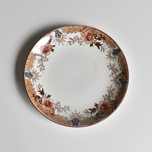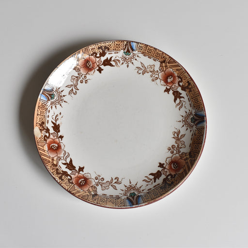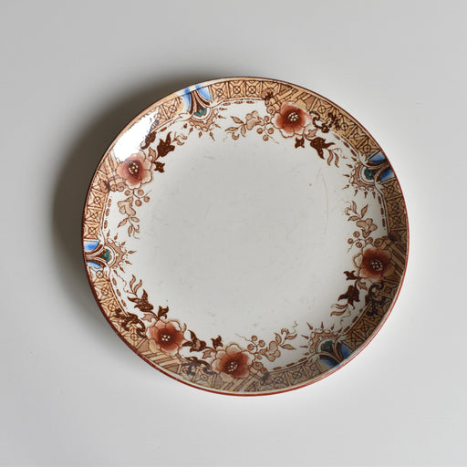 Brocante/蚤の市Sarreguemines窯のアンティークソーサー Minton柄217番です。 鮮やかな色使いで描かれたきめ細やかな花模様。 こちらはインドの花と蝶々がモチーフにされ、エスニックな雰囲気を感じさせます。 磁器の透き通る美しさと生命力溢れる花々に魅了されるシリーズです。 状態:絵柄が少し消えて...