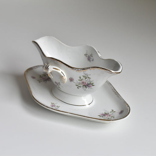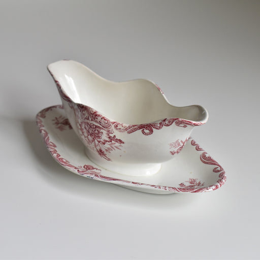 Brocante/蚤の市Saint-Amand窯(サンタマン窯)のアンティークソーシエール Prima(プリマ)シリーズです。 フランスのサンタマン窯による、華やかな赤/ピンクの転写模様が美しい「Prima(プリマ)」シリーズのアンティークソーシエール(ソースポット)です。 濃い赤/ピンクの転写模様が、受け皿と本...