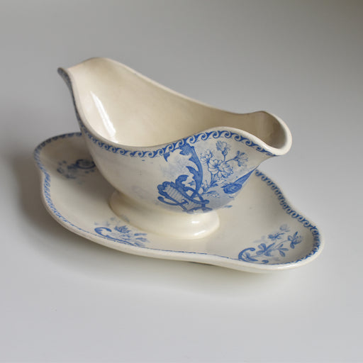 Brocante/蚤の市Gien窯(ジアン窯)のアンティークソーシエールRinçeaux(ランソー)シリーズです。 繊細な唐草模様が生き生きと駆け巡り、その中にちょこんと座る小鳥たちが、まるで一幅の絵画のような美しさです。 躍動感あふれるレリーフが加わり、華やかなテーブルシーンを演出します。 ソースエールは、その...
