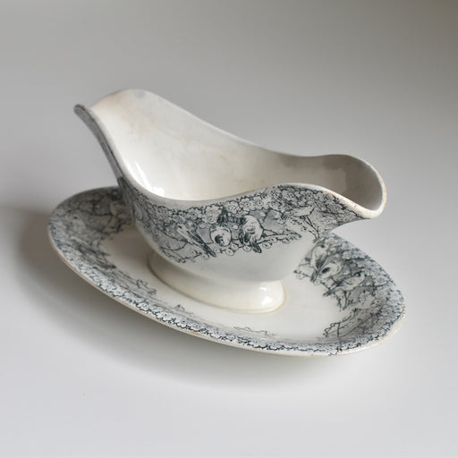 Brocante/蚤の市Digoin & Sarreguemines窯(ディゴワン&サルグミンヌ窯)のアンティークソーシエールです。 優美な白鳥を模したデザインが特徴的で、取手部分が白鳥の頭を思わせる可愛らしいフォルムです。 そのまま飾るだけでなく、植物を植えても絵になる、多用途にお使いいただける一品です。...