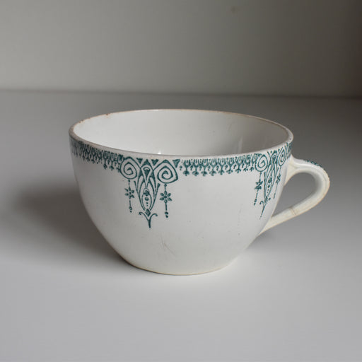 Brocante/蚤の市Saint-Amand窯のアンティークカップ4003番シリーズです。 お城や聖堂のピナクル(小尖塔)またはシャンデリアを彷彿とさせるデザインが素敵なシリーズです。 優しく柔らかなグリーンが爽やかでフレッシュな印象のを与える素敵な一品です。 状態:縁にヒビと欠けがございます。カトラリー跡や縁に小...