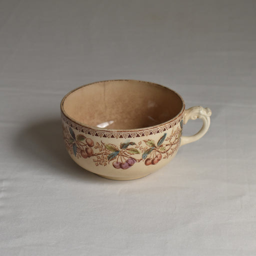 Brocante/蚤の市窯不明のチョコレートカップです。 サルグミンヌまたはミントンと考えています。 細やかな貫入が広がり、アンティークの柔らかな風合いを楽しめるチョコレートカップ。 ぽてっとしたフォルムとさくらんぼの絵柄が可愛らしい一品です。 口が広いので、小物入れとして使っても素敵です。 状態:ヒビが2ヶ所ござい...