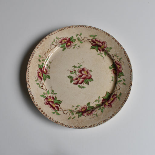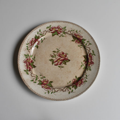 Brocante/蚤の市U&C Sarreguemines窯のアンティークデザートプレートEglantierシリーズです。 ”Eglantier”とは、野薔薇のこと。 勿体無いくらい沢山の花をつけ、道端に咲く野薔薇。自由に咲き誇る自然な姿が美しく描かれています。 ハンドペイントで色付けが施されているため、花の...