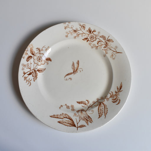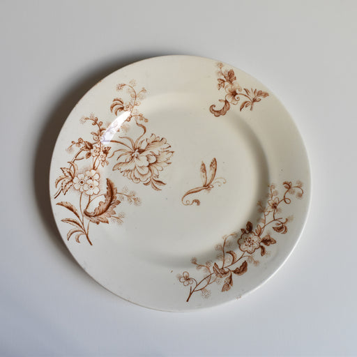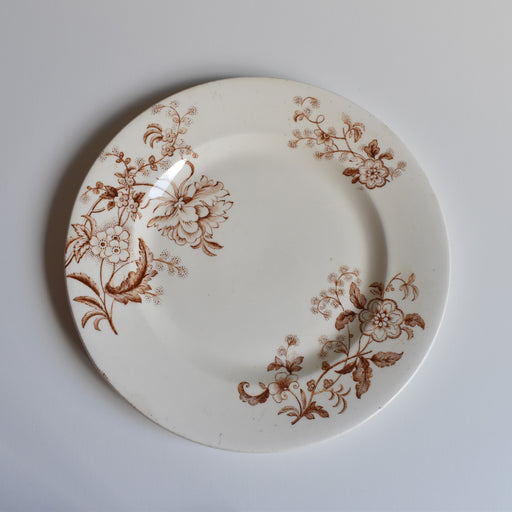 Brocante/蚤の市Sarreguemines窯のアンティークデザートプレート Minton柄235番です。 トランスファーの上から、ハンドペイントで色付けされた花模様。 繊細な手仕事を感じさせる、きめ細やかで美しい一品。 どの角度から見ても絵柄の表情を楽しめるため、使用していない時にも飾って楽しみたくなります。...