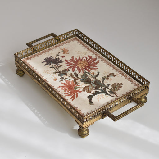 Brocante/蚤の市Choisy le Roi 窯のアンティークトレーです。 真鍮の枠にタイルが敷き詰められたトレー。 美しい菊の花が描かれた素敵なデザインです。ブラウンカラーのトランスファーとハンドペイントに色づけが、調和した上品な一品です。 また、珍しいアイテムであり、状態も比較的に良いのも嬉しいポイント。 ...