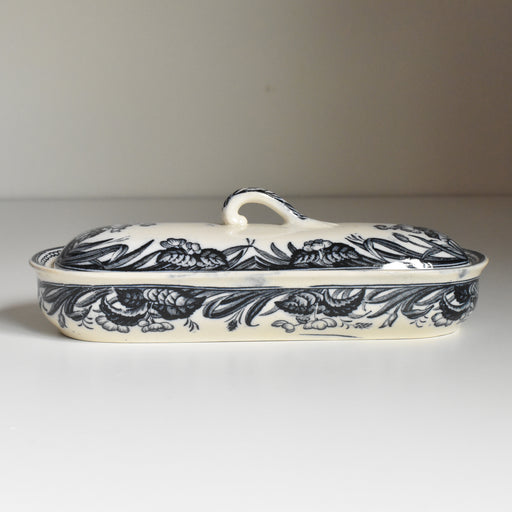 Brocante/蚤の市イギリス Liddle Elliot & Son 窯のIRISシリーズのソープディッシュです。 二月の素敵なデザインのソープディッシュ。細やかな貫入が美しさを感じさせます。 ペンなどを入れてデスク周りに置いたり、アクセサリーや小物を入れて飾ったりするのもおすすめです。 状態:貫入が見ら...