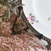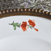 プレートの絵はハンドペイントの花模様。真鍮なスタンドと合わさり、可憐さと気品を感じさせます。