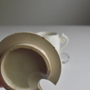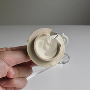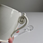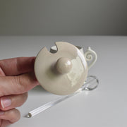 取手が素敵なマスタードポットです。スプーンもついていますが同じ時代のものか不明です。