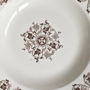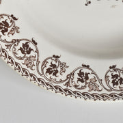一般的にブルーやグリーンが多いフランスのアンティーク陶器の中で、この深皿は落ち着いたセピアブラウン(茶色)の単色で絵付けが施されています。