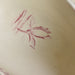 白みがかったアイボリーの素地に、睡蓮の葉や花びらを思わせるシンプルなモチーフが、控えめな赤色で散りばめられています。