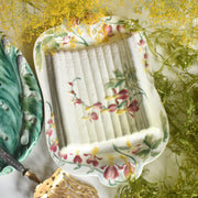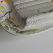バルボティーヌの技法によって、アスパラガスや花々のレリーフが繊細かつ立体的に表現されており、職人技の高さがうかがえます。