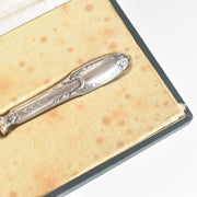 持ち手は銀で、繊細な植物のモチーフが丁寧に彫り込まれています。