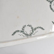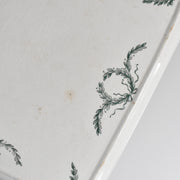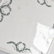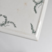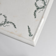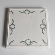 四角形の白い台に、ローリエの葉のリースが描かれた鍋敷きです。