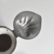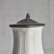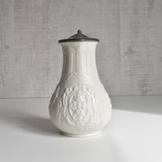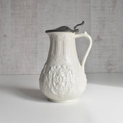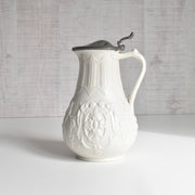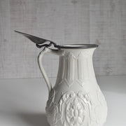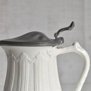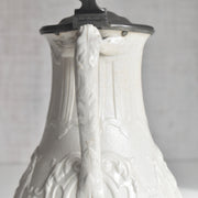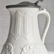 時を経たピューターの落ち着いた銀色の光沢は、陶器の柔らかな色合いと見事に調和し、ヴィクトリア朝時代の重厚で優美な雰囲気を色濃く感じさせます。