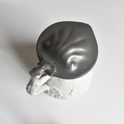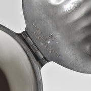 特に注目すべきは、重厚なピューター(錫合金)製の蓋です。この蓋は、銀製品で名高いJames Dixon & Sons, Sheffield(ジェームズ・ディクソン&サンズ、シェフィールド)製であり、当時の英国を代表する陶器メーカーと金属加工メーカーが組み合わさって生まれた、非常に格調高い逸品です。