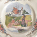中央の絵柄を囲むように、縁には美しい花束やリボンの装飾が施された、華やかでコレクターにも人気の高い一枚です。