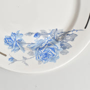 上品で可憐な印象:優しいブルーローズのプリントが、上品で可憐な印象を与えます。