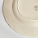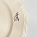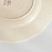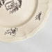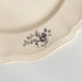 人気の花リム(フリル状の縁)が施された、温かみのあるクリームがかったアイボリー色の美しいプレートをベースに、シックな黒のトランスファー(転写)プリントが際立っています。