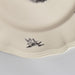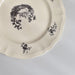 人気の花リム(フリル状の縁)が施された、温かみのあるクリームがかったアイボリー色の美しいプレートをベースに、シックな黒のトランスファー(転写)プリントが際立っています。