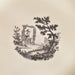 人気の花リム(フリル状の縁)が施された、温かみのあるクリームがかったアイボリー色の美しいプレートをベースに、シックな黒のトランスファー(転写)プリントが際立っています。