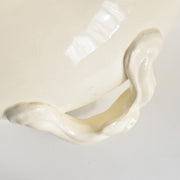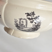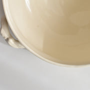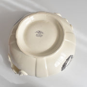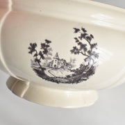 ベースとなる陶器は、経年により深みを増したクリームがかったアイボリー。そこに、黒色のトランスファー(転写)プリントで細やかな模様が施されています。このモノクロームのコントラストが、クラシカルでありながらモダンな印象を与えます。