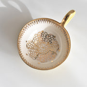 ハンドペイントの躍動感: カップの内外やソーサーに施された細やかな金の装飾は、すべて作家による手描き。