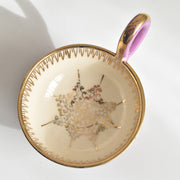 状態:金彩が薄くなっている部分やカップの縁部分に複数の微細なチップ(欠け)が見られます、ヴィンテージ品として全体的に艶やかで良好な状態を保っています。