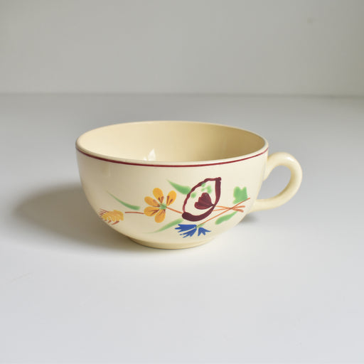 Brocante/蚤の市Salins窯のヴィンテージチョコレートカップMoissons Doréesシリーズです。 金色の収穫を意味するシリーズで秋に咲く花が描かれています。同じシリーズのデザートプレートをソーサーとして使用も可能です。 状態:貫入が見られます。目立った傷がなくとてもいい状態です。 サイズ:14.5c...
