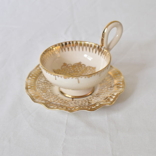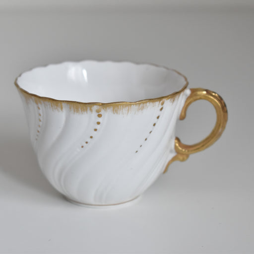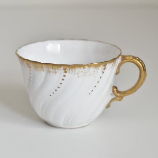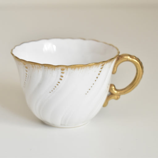 Brocante/蚤の市Digoin & Sarreguemines窯のアンティークカップです。 柔らかなレースのカーテンが風に靡くような美しいレリーフ。レリーフにのせられた金彩が華やかさをプラスします。 LouisXVシリーズと同じデザインです。 状態:縁に浅い欠けがございますが使用感が少なくいい状態です。...