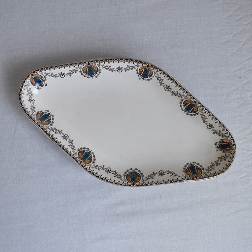 Brocante/蚤の市Digoin & Sarreguemines窯(ディゴワン&サルグミンヌ窯)のヴィンテージラヴィエArabesques(アラベスク)シリーズです。 20世紀中期に作られたこの一枚は、温かみのある乳白色の肌に、繊細な金彩の縁取りと、生き生きとした花のプリントが美しく映えます。 中央に...