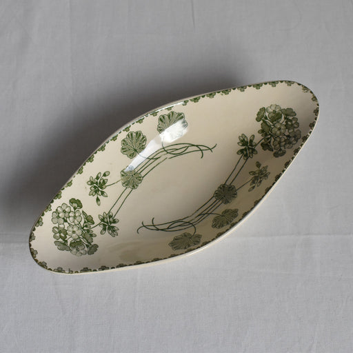 Brocante/蚤の市U&C Sarreguenines窯(サルグミンヌ窯)のアンティークラヴィエ Groseilles (グロゼイユ)シリーズです。 人気の細長い形状に、シックなセピア色のグロゼイユ(スグリ)柄が描かれた一品。 素朴な色合いと繊細な縁飾りが、落ち着いた大人のフレンチカントリーに馴染みます...