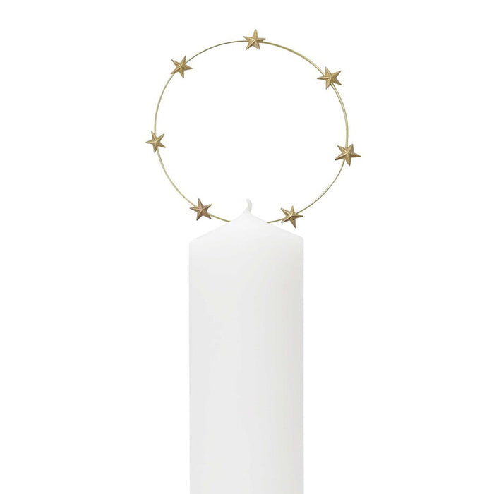 太めのキャンドル用です。キャンドルの後ろにつけ、点火する先端が輪の中央に来るようにします。小さな星が輪を描いて炎を囲む様子はとても美しいです。