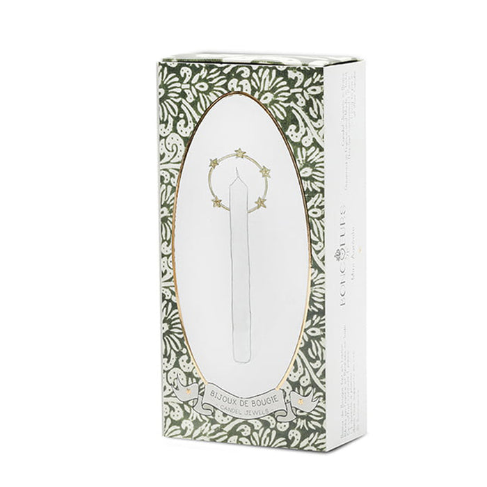 画鋲のような作りになっていて、裏に細いピンが仕込まれています。シンプルなキャンドルに差し込むだけで、特別なキャンドルに早変わり。