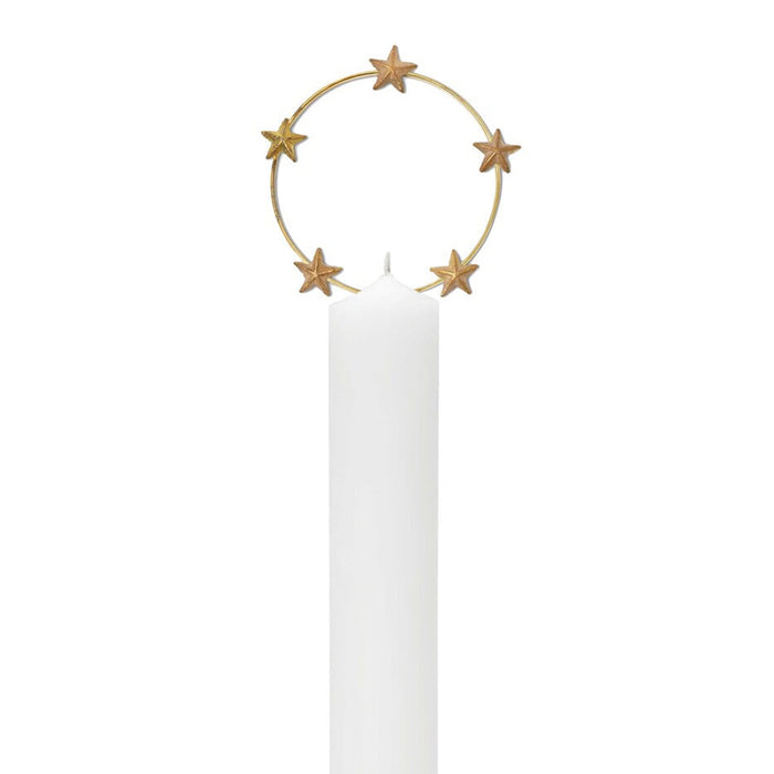 少し細めのキャンドル用です。キャンドルの後ろにつけ、点火する先端が輪の中央に来るようにします。小さな星が輪を描いて炎を囲む様子はとても美しいです。