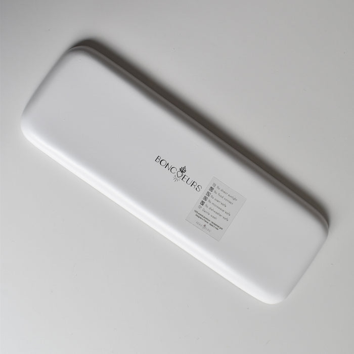 細長いフォルムが美しい、モダンなデザインのトレイです。
