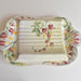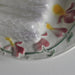 全体を柔らかなクリーム色でまとめつつ、その周囲には可愛らしい赤い花と緑の葉が手描きで描かれており、食卓に上品な華やかさを添えます。