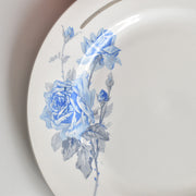 上品で可憐な印象:優しいブルーローズのプリントが、上品で可憐な印象を与えます。