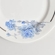 上品で可憐な印象:優しいブルーローズのプリントが、上品で可憐な印象を与えます。
