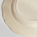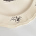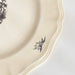 人気の花リム(フリル状の縁)が施された、温かみのあるクリームがかったアイボリー色の美しいプレートをベースに、シックな黒のトランスファー(転写)プリントが際立っています。