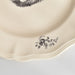 人気の花リム(フリル状の縁)が施された、温かみのあるクリームがかったアイボリー色の美しいプレートをベースに、シックな黒のトランスファー(転写)プリントが際立っています。