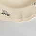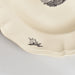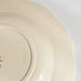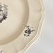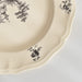 人気の花リム(フリル状の縁)が施された、温かみのあるクリームがかったアイボリー色の美しいプレートをベースに、シックな黒のトランスファー(転写)プリントが際立っています。