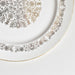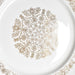 中央には見事な花柄のメダリオン、その周りには繊細な縁取りの模様、そして薄い金の縁。