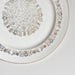 中央には見事な花柄のメダリオン、その周りには繊細な縁取りの模様、そして薄い金の縁。