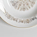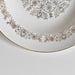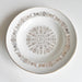 中央には見事な花柄のメダリオン、その周りには繊細な縁取りの模様、そして薄い金の縁。