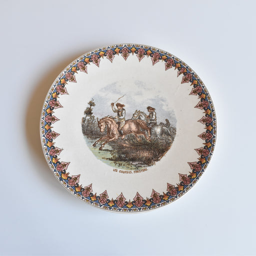 Brocante/蚤の市U&C Sarreguemines窯の絵皿ブルターニュシリーズ Les courses. Finistèreです。 Les courses. Finistère.フランスのブルターニュ地方のフェニステールで行われたレースの様子を描いたシリーズ。 風を切りながら走り抜ける躍動的なデザイン...