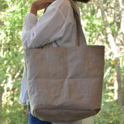 丈夫な生地と糸で作られた深さもしっかりあるトートバックは、重たいものも大きなものも安心して運ぶことができます。