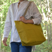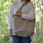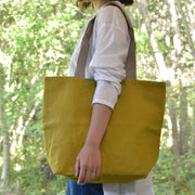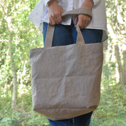 丈夫な生地と糸で作られた深さもしっかりあるトートバックは、重たいものも大きなものも安心して運ぶことができます。