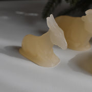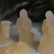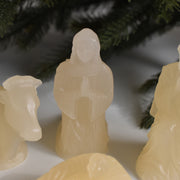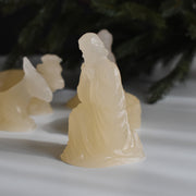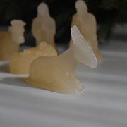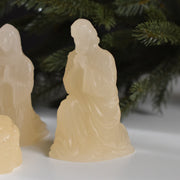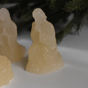 母マリアと父のヨセフ、そして牛とロバがイエス・キリストを優しく見守るように囲んでいます。一つ一つ手のひらに乗るほどの可愛らしいサイズですが、穏やかな表情や、柔らかな雰囲気が蝋で見事に再現されています。