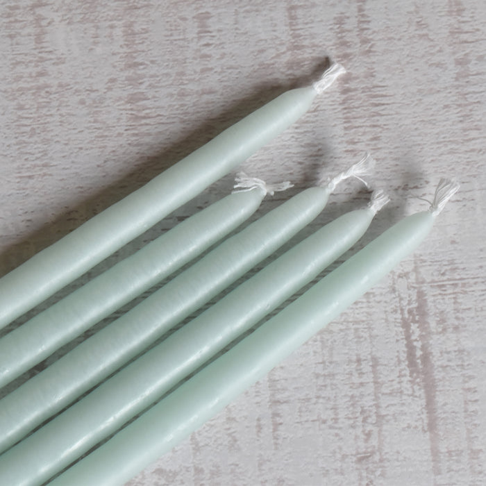 洗練されたニュアンスカラー、セラドンのスリムで華奢なキャンドル